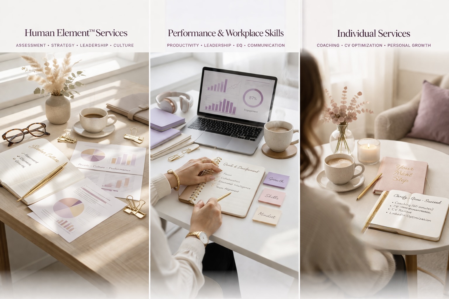 My work is delivered both individually and in collaboration with trusted professionals who operate in alignment with the Human Element™ philosophy, ensuring a cohesive, consistent, and high-quality experience across every engagement.