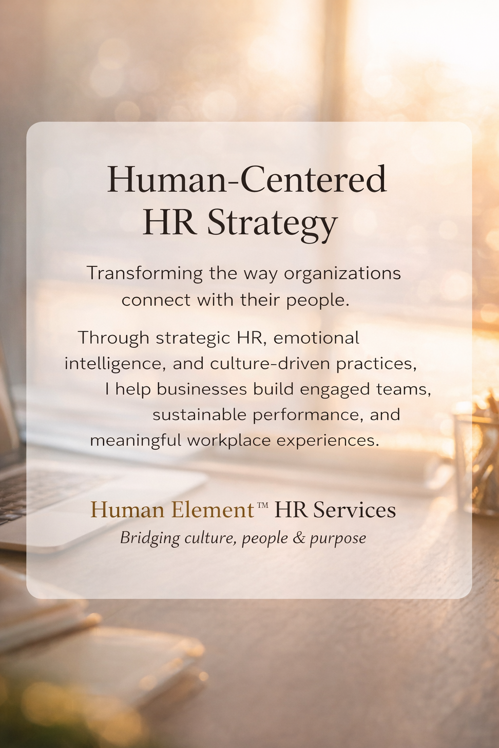 Alongside my professional roles, I developed the Human Element™ framework — a people-first approach designed to help organizations understand and strengthen the core elements that drive performance and culture.